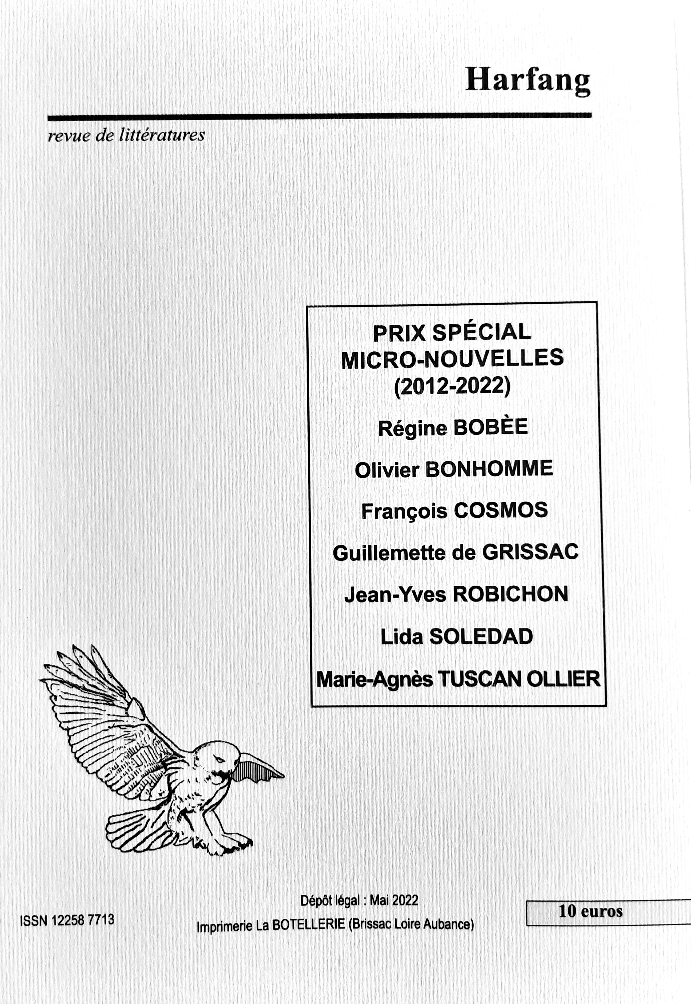 100 mots, pas un de plus pas un de moins. La revue Harfang fête les 10 ans de sa rubrique « 100 mots pour le dire ». À cette occasion elle publiera son hors-série n° 13. J’aurai le grand plaisir de figurer au sommaire avec ma micro-nouvelle « Nuit ». Encore un peu de patience avant de la découvrir, sortie prévue en juin prochain.